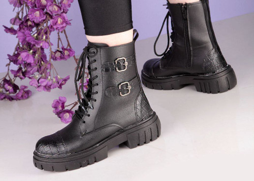 نیم بوت لژ دار ۵ سانتی جلو بندی بغل زیپ طرح یک سگک۵۳۹٬۰۰۰ تومان