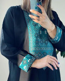 مانتو بلند مدل کتیبه جنس ابروبادی