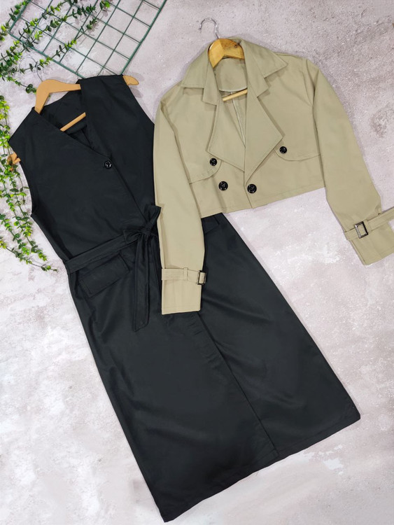 🦋رنگبندی:کت نسکافه ؛ سارافون مشکی🎨