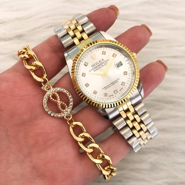 👚نام : ساعت رولکس زنانه بنداستیل دو رنگ صفحه سفید