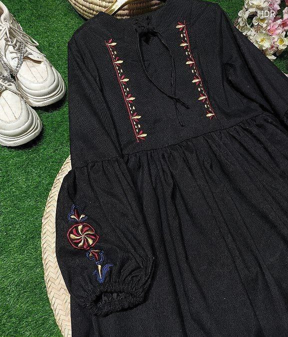 مانتو پالتویی فرشته گلدوزی شده جنس کبریتی ریز بدون ریزش اعلا