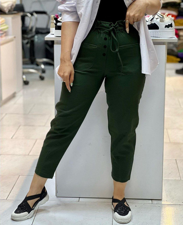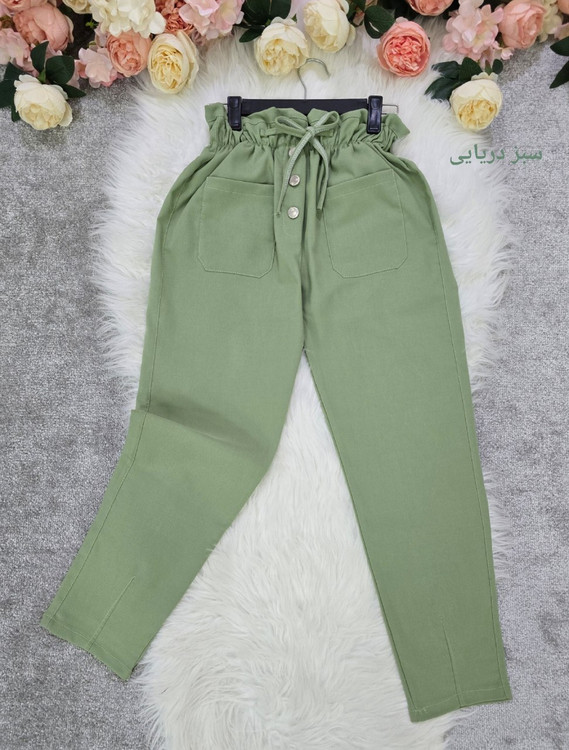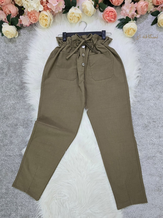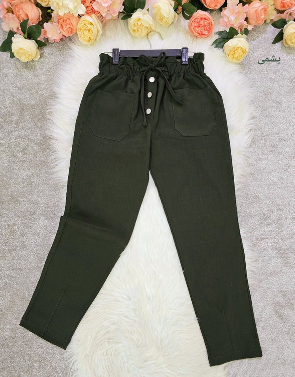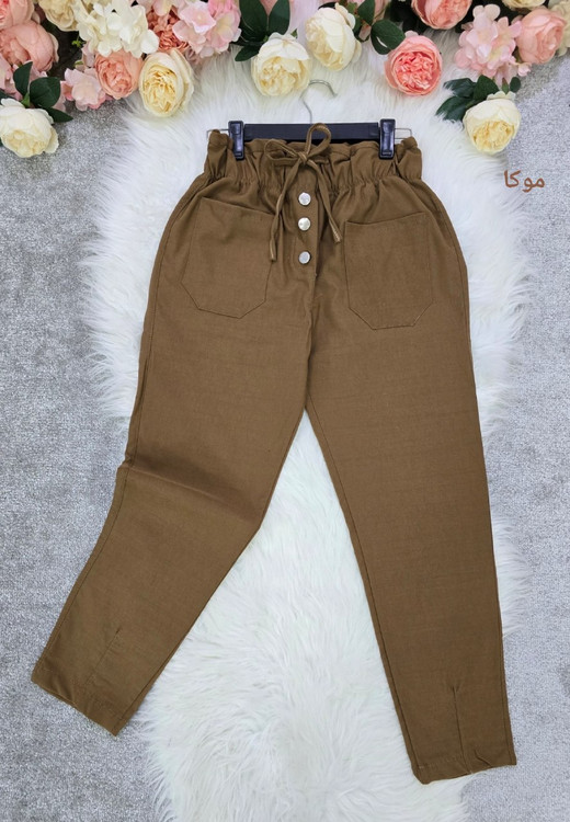 شلوار مام جیب جلو پاکتی کتان کش کمر هویجی تنخور عالی فوق العاده جذاب و شیک قد حدود ۹۰
