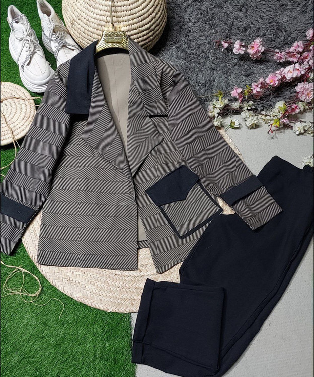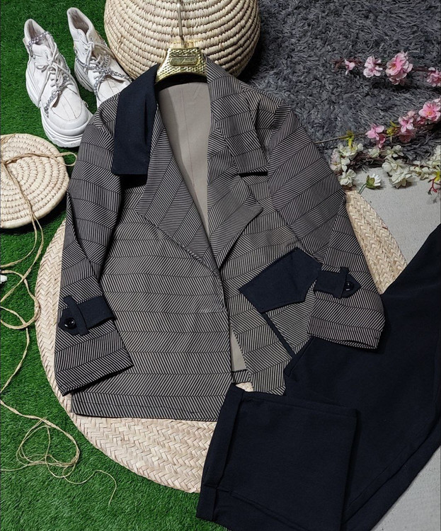 رنگ بندی : کت راه راه سرمه ای وشلوارسرمه ای, کت راه راه مشکی و شلوار مشکی