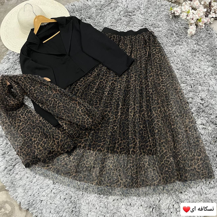👚نام : سه تیکه پلنگی ( کت دامن شال )
