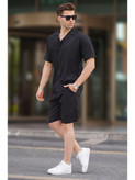 تیشرت شلوارک مردانه دکمه دار جنس کاملس بهاره خنک و راحت