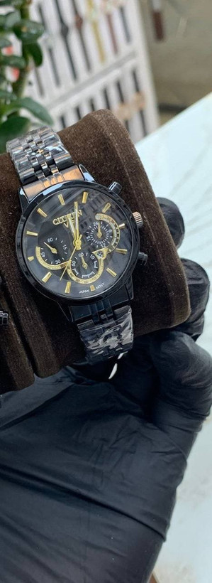 ساعت زنانه یا مردانه مارک سیتیزن وی ای پی به صورت تک دارای تقویم و گارانتی طرح سه موتوره بند استیل مشکی صفحه مشکی
