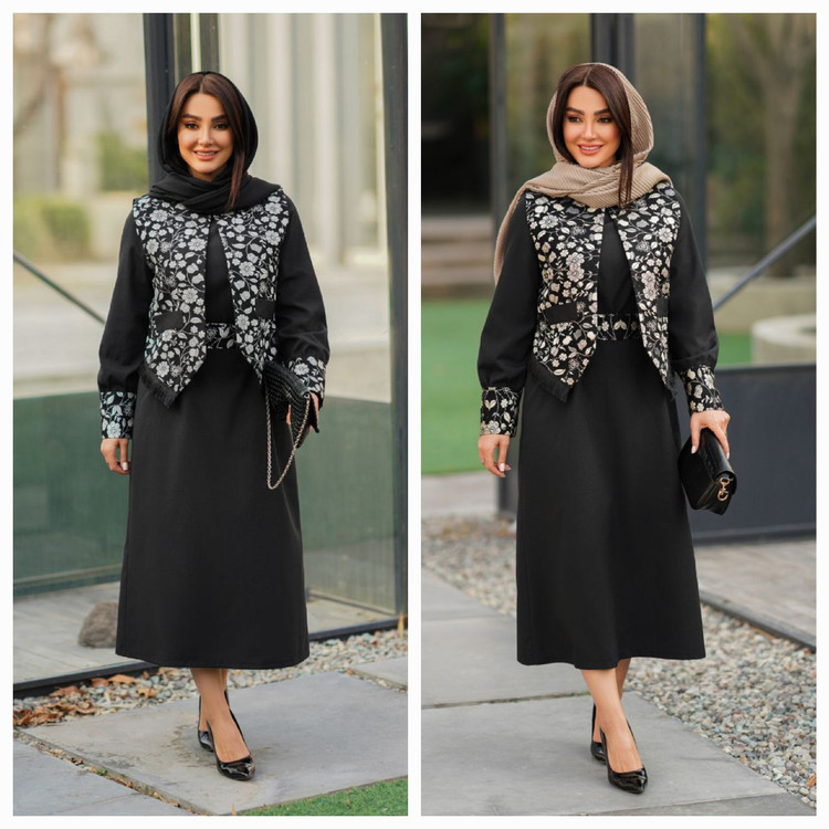 جلیقه سارافون سه تیکه آرشیدا جنس زیره مازراتی بسیاه خوش دوخت تنخور شیک