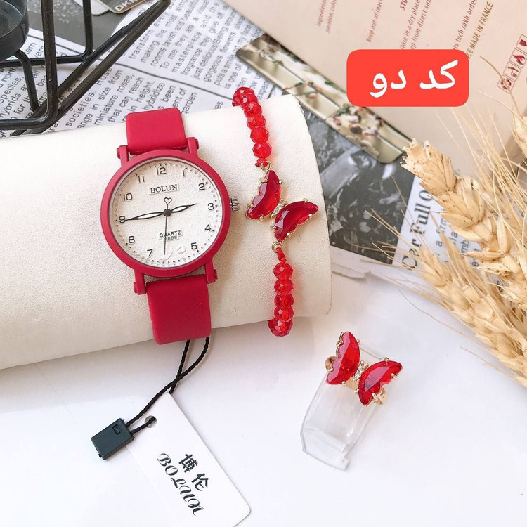 ساعت مارک BOULUN همراه با دستبند پروانه و انگشتر پروانه