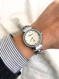ساعت مچی زنانه یا دخترانه بند استیل نقره ای صفحه گرد دور قاب نگین طرح ماهی وارداتی از دبی