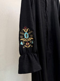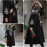 مانتو بلند مشکی مدل گلایل جنس ابرو بادی گلدوزی شده