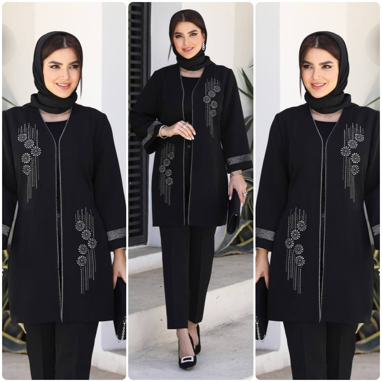 مانتو غوغا،جلوی کار و آستین نگین کوبی شده ولبه مانتو مغزی دوزی شده