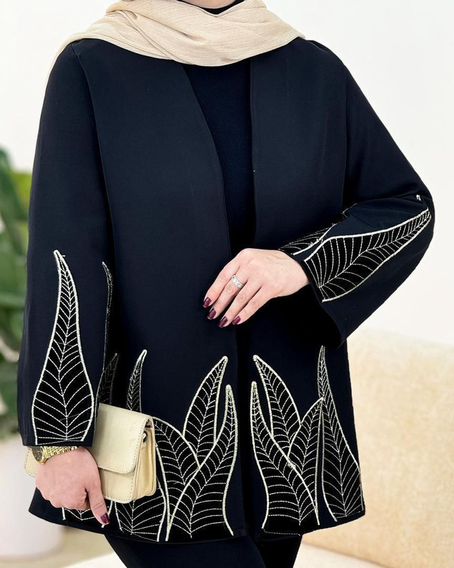 مانتو مشکی برگی جنس مازراتی با کیفیت