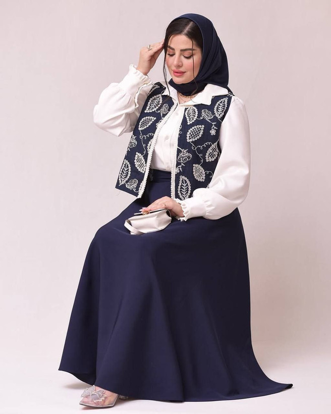 ست سه تیکه ثریا شومیز جلیقه دامن جنس شومیز کرپ حریر جنس جلیقه لنین سوزن دوزی درجه یک و دامن کرپ صوفیا درجه یک سبک و ریزش دار