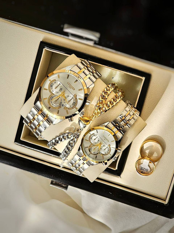 👚نام : پک کامل ست ساعت+ست دستبند +ست حلقه زنانه و مردانه باهم برند سیتیزن بنداستیل