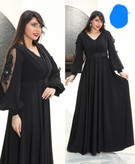 لباس مجلسی مدل آوینا جنس کرپ غواصی و استین تور و دانتل برجسته یقه نوار زودی شده با کمر بند سایز بندی ۴۰ تا ۵۰