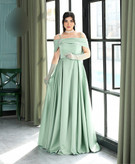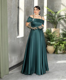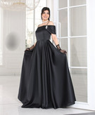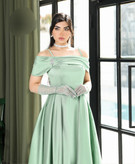 لباس مجلسی مدل باران جنس ساتن امریکایی و خرجکار نگین همراه دستکش مرواریدی سایز بندی ۳۶ تا ۴۶