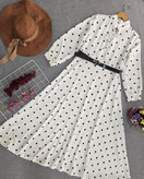 پیردهن توپی مجلسی راحله جنس الیزه دارای کمربند چرمی دامن کلوش