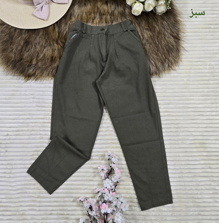 شلوار کتان مام استایل جنس کتان کاغذی اصل و اعلا تنخور بینظیر دوخت تضمینی جنس پارچه بسیار خنک مناسب چهار فصل پشت کش جلو دو ساسون دو جیب کاربردی قد ۹۰
