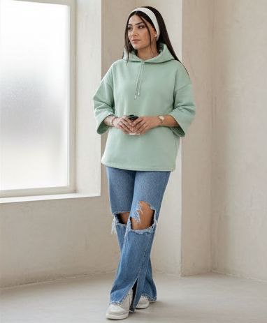 هودی باکسی کلاهدار جنس دورس دو نخ داخل کرک با کیفیت