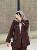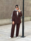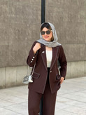 کت شلوار مزونی ستاره جنس کرپ سوپر باربی گرم بالا رنگ فوق العاده استثنایی و ترندی قهوه ای سوخته جذاب و قواره عالی