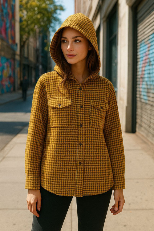 مانتو پیچازی کلاه دار مناسب روزهای پاییزی جنس پیچاری گرم بالا فری ۳۸ تا ۴۶