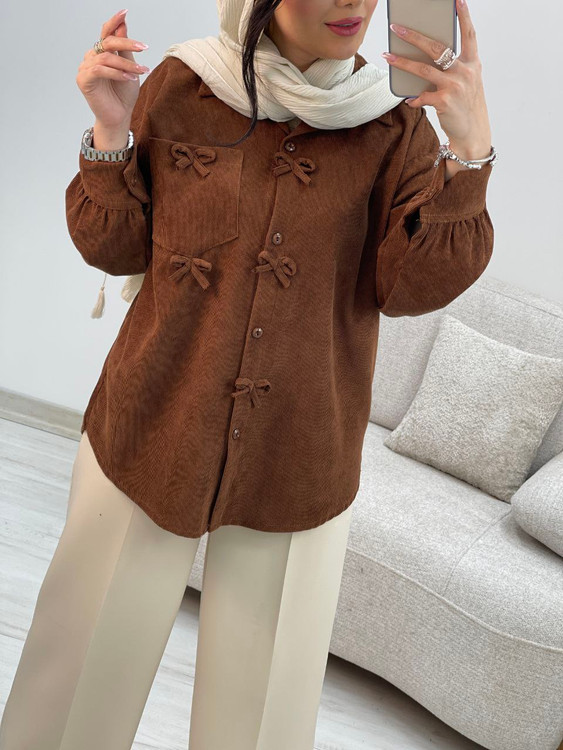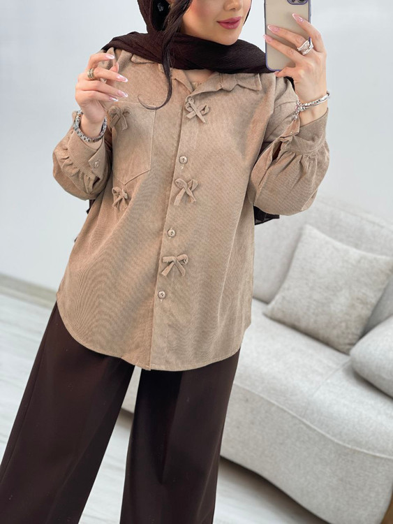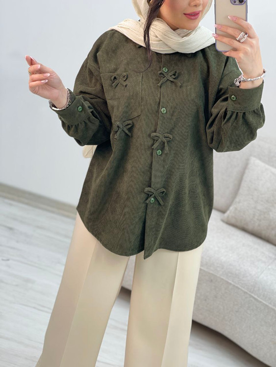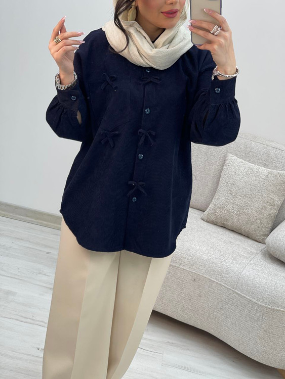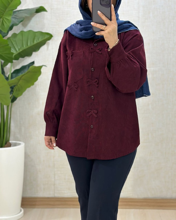 مانتو مخمل کبریتی ریز مدل پاپیون سایز فری ۳۸ تا ۴۶.رنگ‌مورد نظر در قسمت توضیحات نوشته شود