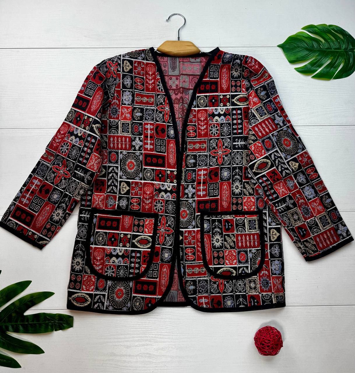 کت گلیمی جنس تافته رنگ قرمز مشکی