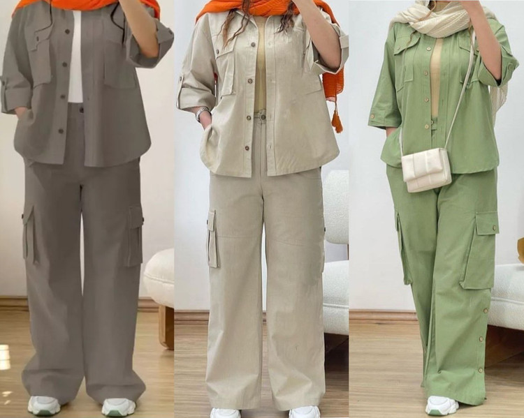ست مانتو شلوار جنس کتان کش با کیفیت