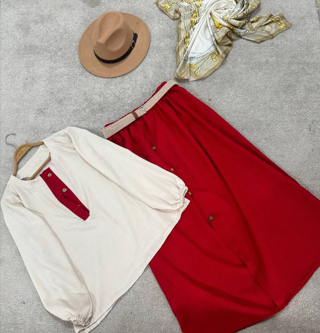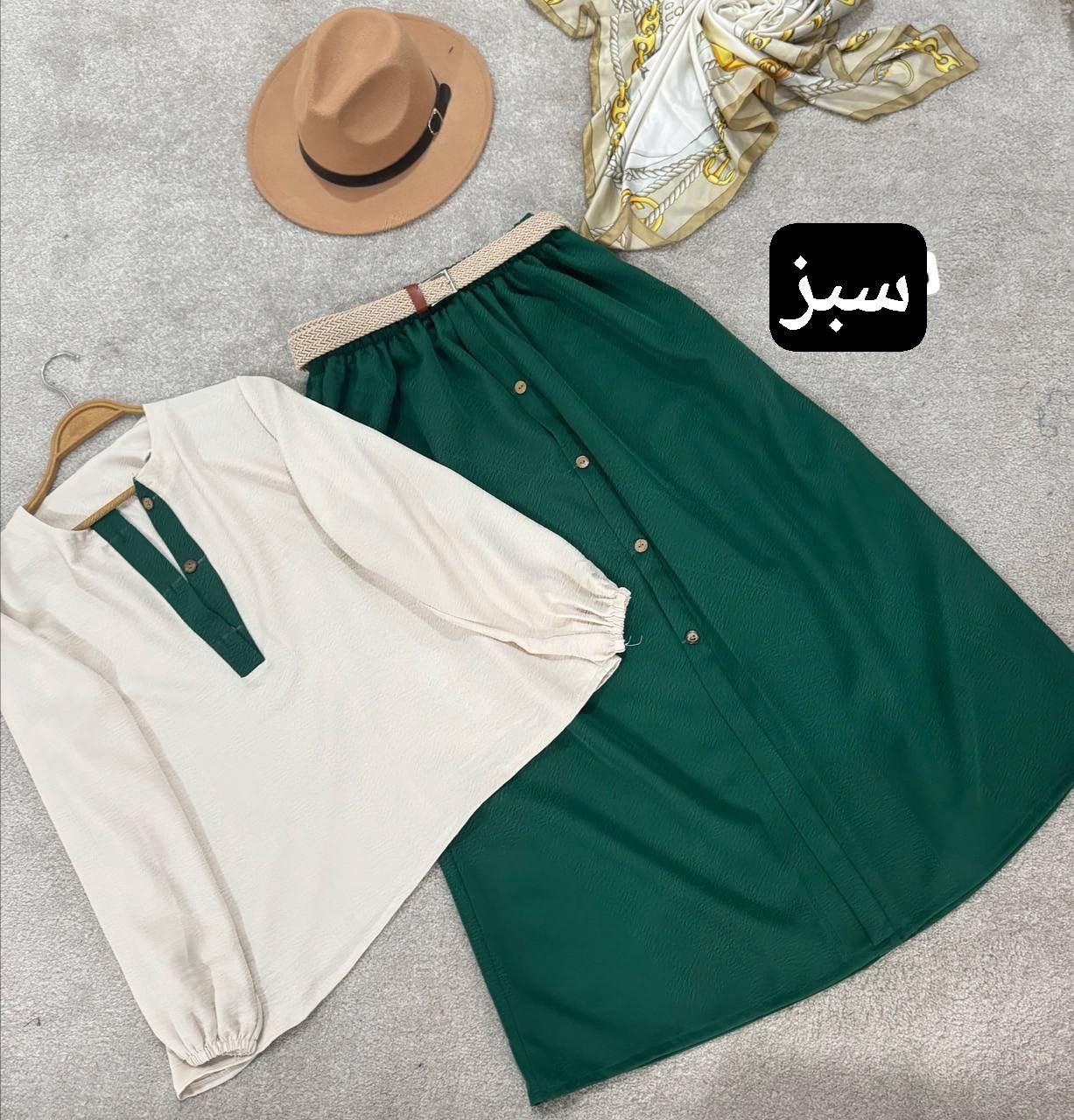 شومیز دامن کمربند ست سه تیکه یلدایی مدل عسل سفارشی دوز۷ اذر ارسال
