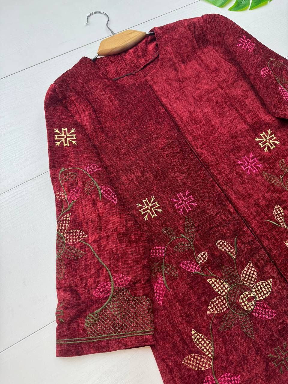 مانتو مجلسی رازقی جنس مخمل درحه یک گلدوزی شده مناسب یلدا