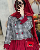 کت سارافون یلدایی مدل گل ناز جنس مخمل کبریتی ریز و چهارخونه های پشمی اعلا سایز فری ۳۸ تا ۴۶