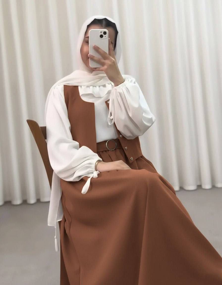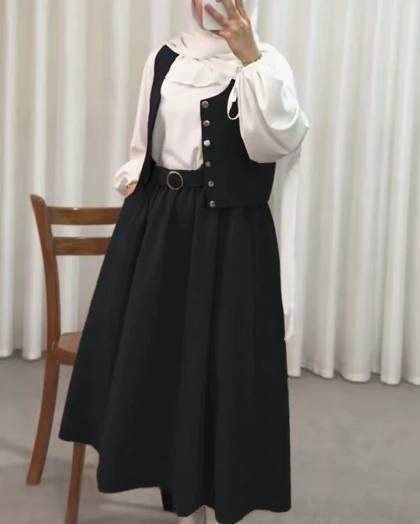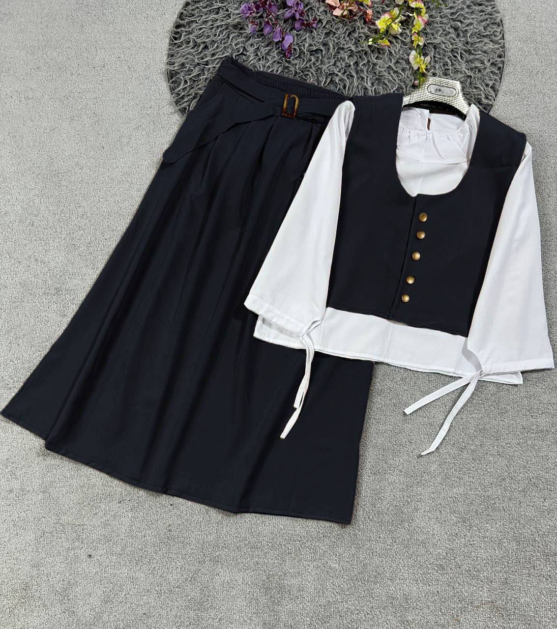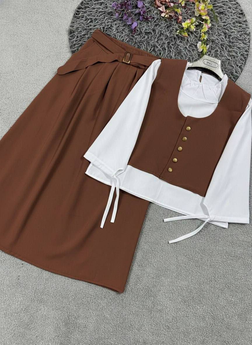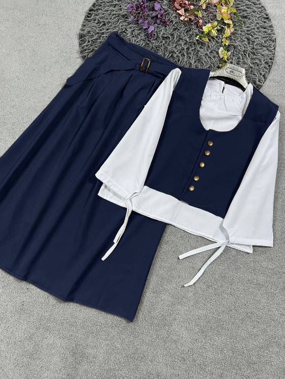شومیز دامن جلیقه همراه کمربند مدل سپیده جنس کرپ مازراتی و داکرون اعلا