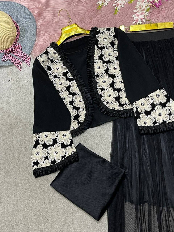 جنس : کت کرپ مازراتی با خرجکار گلدوزی شده دامن و شال تور