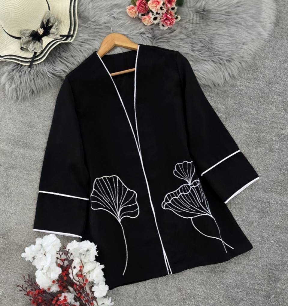 لبه های جلوی مانتو و سر آستین مغزی دوزی شده✅