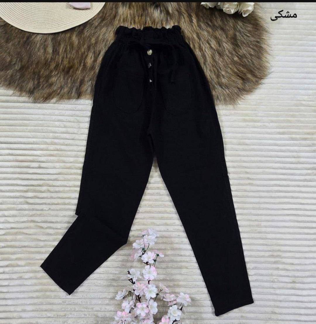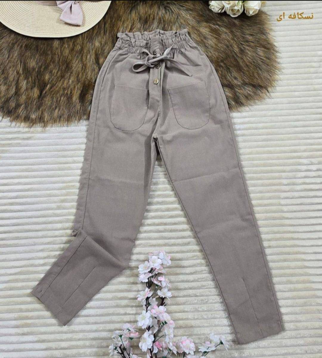 شلوار مام کمر هویجی جنس کتان کش