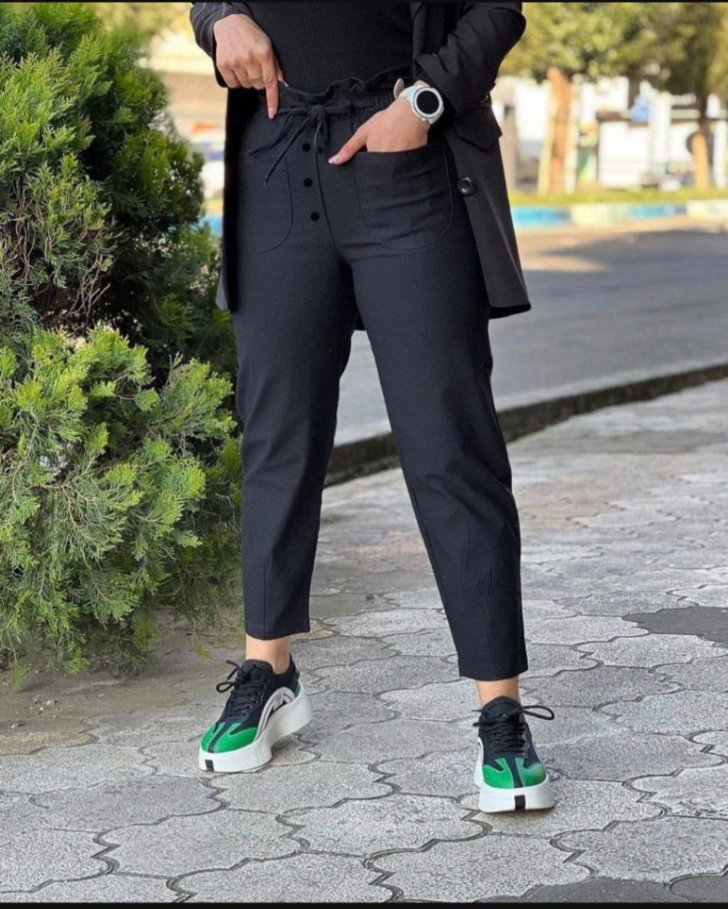 👗شلوار کتان کش مام فیت کمر هویجی جنس کتان کش اعلا قد 90 تنخور فوق العاده شیک و جذاب کیفیت و دوخت تضمینی دو جیب کاربردی