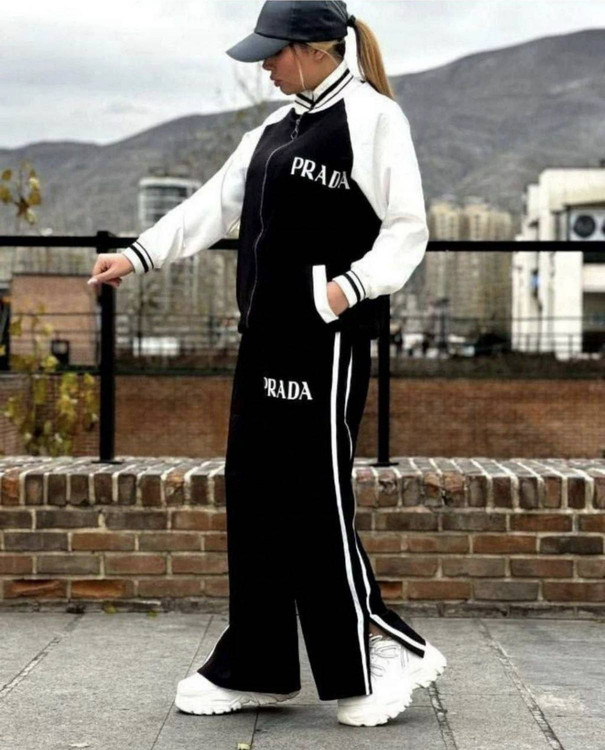 ست سوییشرت شلوار پرادا جنس کتان کش اعلا تنخور عالی