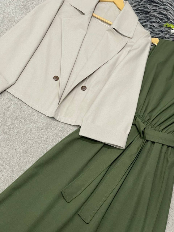 ✅️ پشت یقه زیره دکمه خورده جهت تنپوش راحت لباس و دارای کمربند میباشد جهت تنظیم سایز