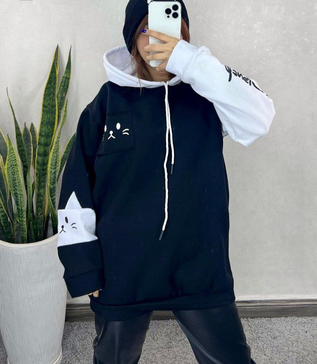شناسه#65566 #پرفروش 🩷هودی میو 🩷جنس: دورس تو کرکی 🩷رنگبندی: سفید و مشکی 🩷سایزبندی: 38 تا 46 💕قد هودی حدود 70 سانت 💕دور سینه حدود 110 سانت 💕آستین از یقه حدود 63 سانت