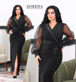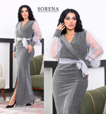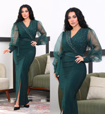 ماکسی مجلسی مدل چکاوک لمه کش شاین به همراه مروارید کاری شده کمر بند و استین از جنس بیده بهترین جنس تور