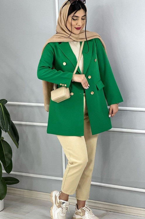 شناسه : #48286 نام : کت جنس : کرپ مازراتی رنگ بندی : سرخابی, سبز, مشکی, کرمی, آبی آسمانی, نسکافه ای سایز ها : 1(36_42), 2(44_48) قد کت ۸۰ جلوی کت لایه پرشین داردجیبها نما دوخت مزونی