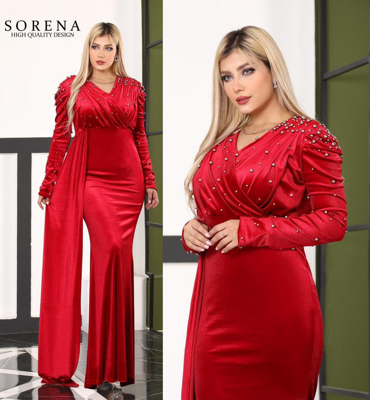 ماکسی مجلسی مدل سورنا مخمل درجه یک به همراه فول مروارید کاری شده