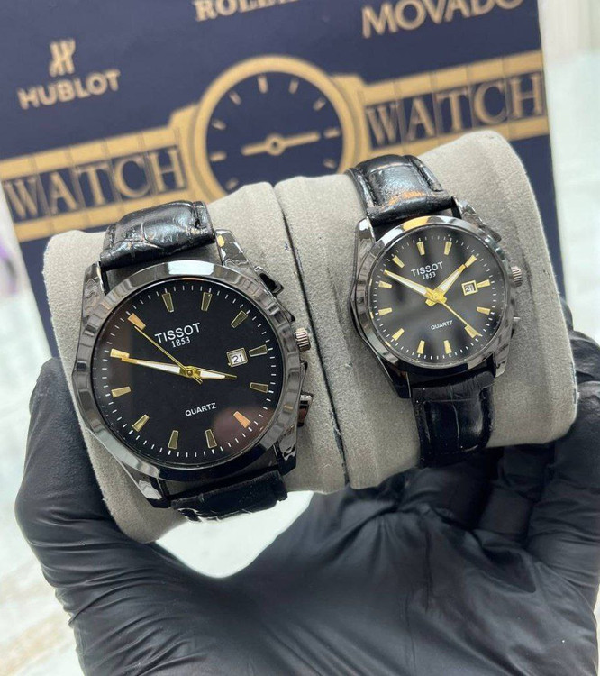 ست ساعت تیسوت بندمشکی صفحه مشکی قاب مشکی