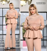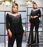شومیز شلوار لیان مجلسی کرپ مازراتی درجه یک به همراه فول نگین کار شده حرارتی