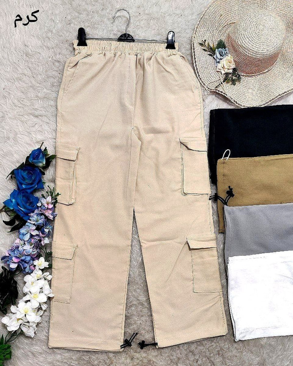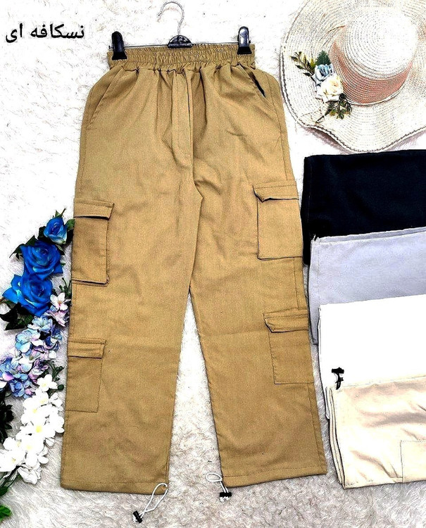 شلوار کارگو جنس پارچه کتان کش درجه یک و اعلا با تنخور فوق العاده زیبا و شیک و کیفیت تضمینی دارای شش جیب دمپا گت دار قد 100