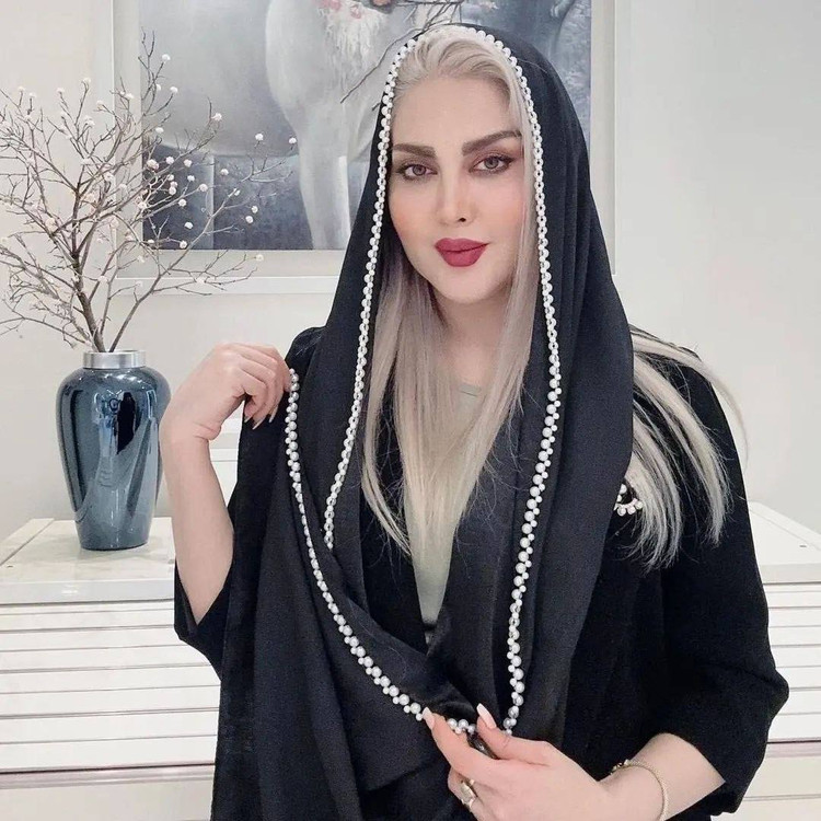 شال مرواریدی جنس کرپ حریر مروارید دوخته شده
