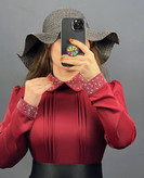 قسمت استین و یقه خرج کارdmc نگین کاری شده