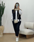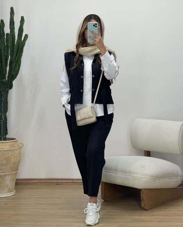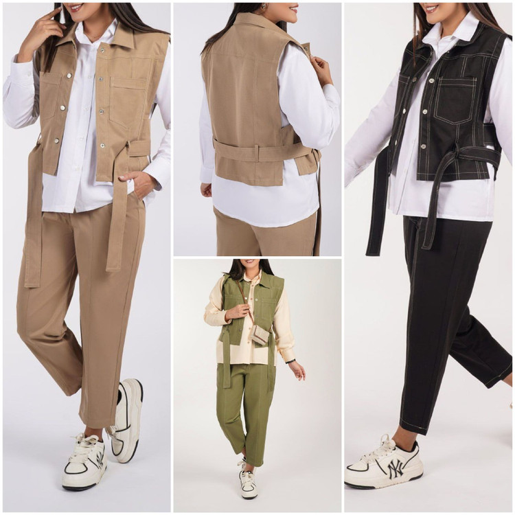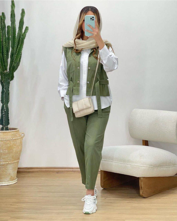 قد جلیقه ۵۱✅دورسینه ۱۰۴✅قد شومیز ۷۲✅دورسینه شومیز۱۰۶✅استین از کنار یقه ۷۱✅بازو ۳۴✅شلوار ۹۰✅ران ۶۲