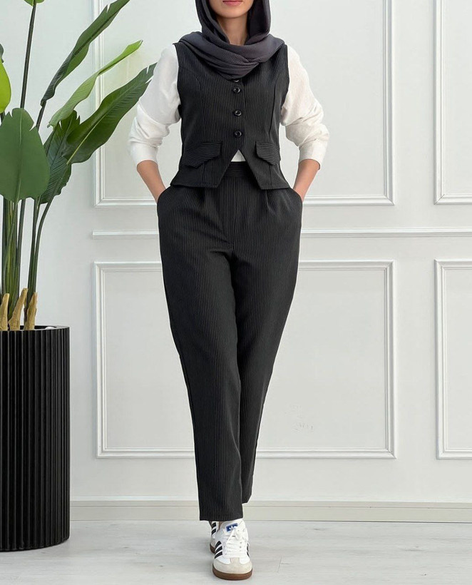 کت و شلوار جلیقه مدل شهرزاد جنس پرشیا دیپلمات راه راه