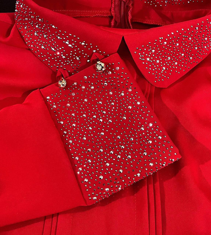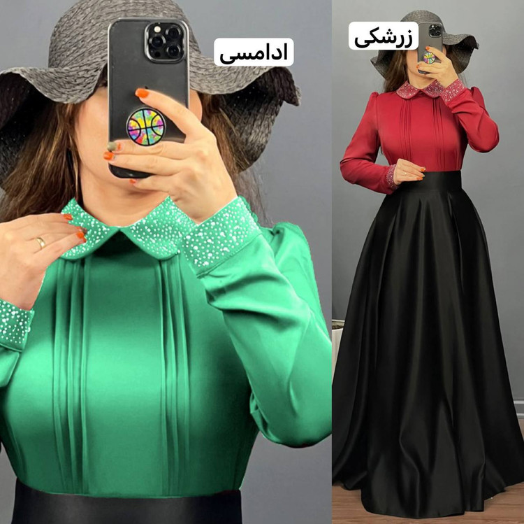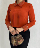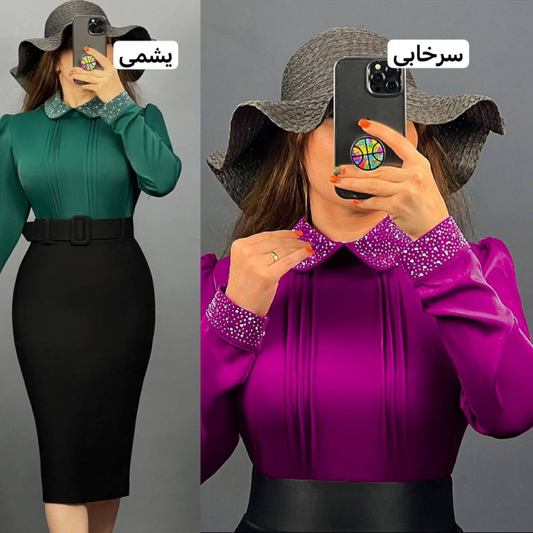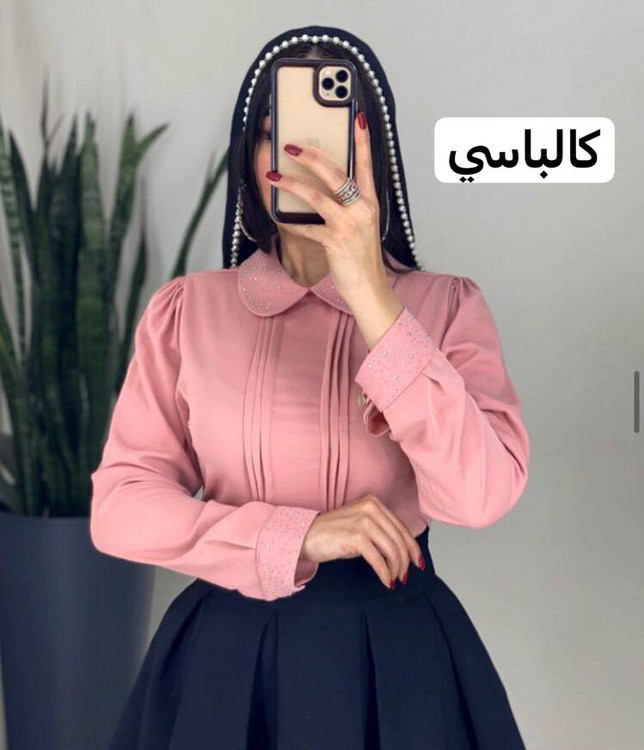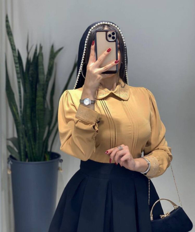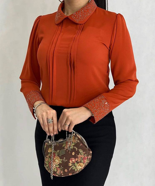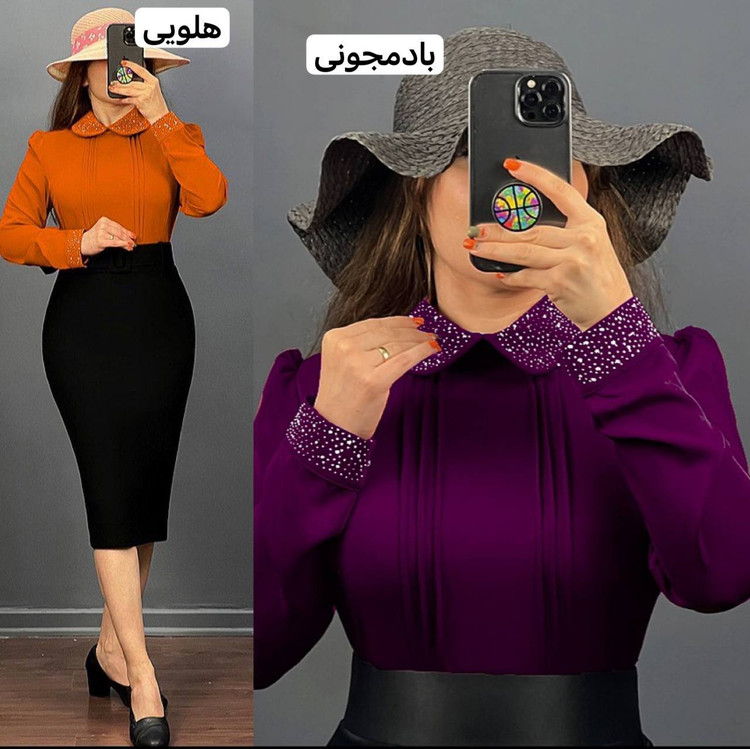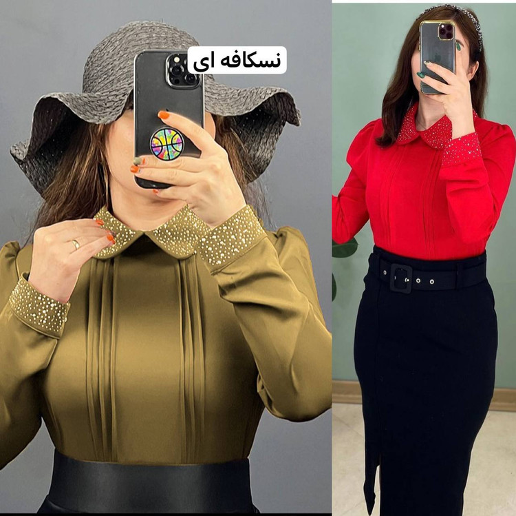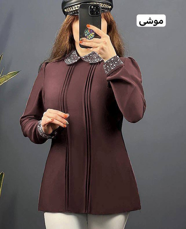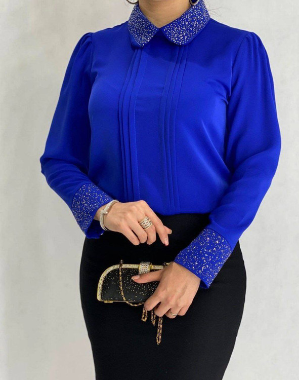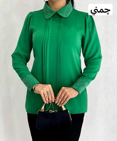 شومیز مجلسی یقه نگین بسیار شیک جنس الیزه گرم بالا ترک